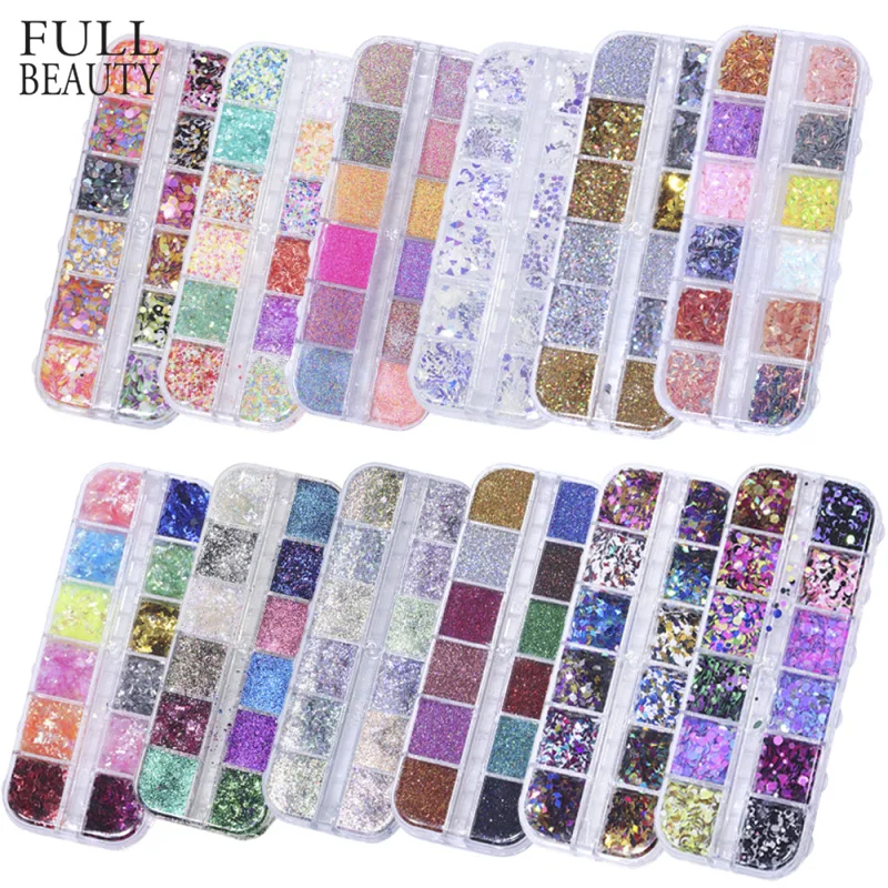 Полная красота 12 сетокнаборы блесток для ногтей разные зеркальныерусалкисахарные Круглые DIY чешуйки Блестки Дизайн ногтей украшения CH067