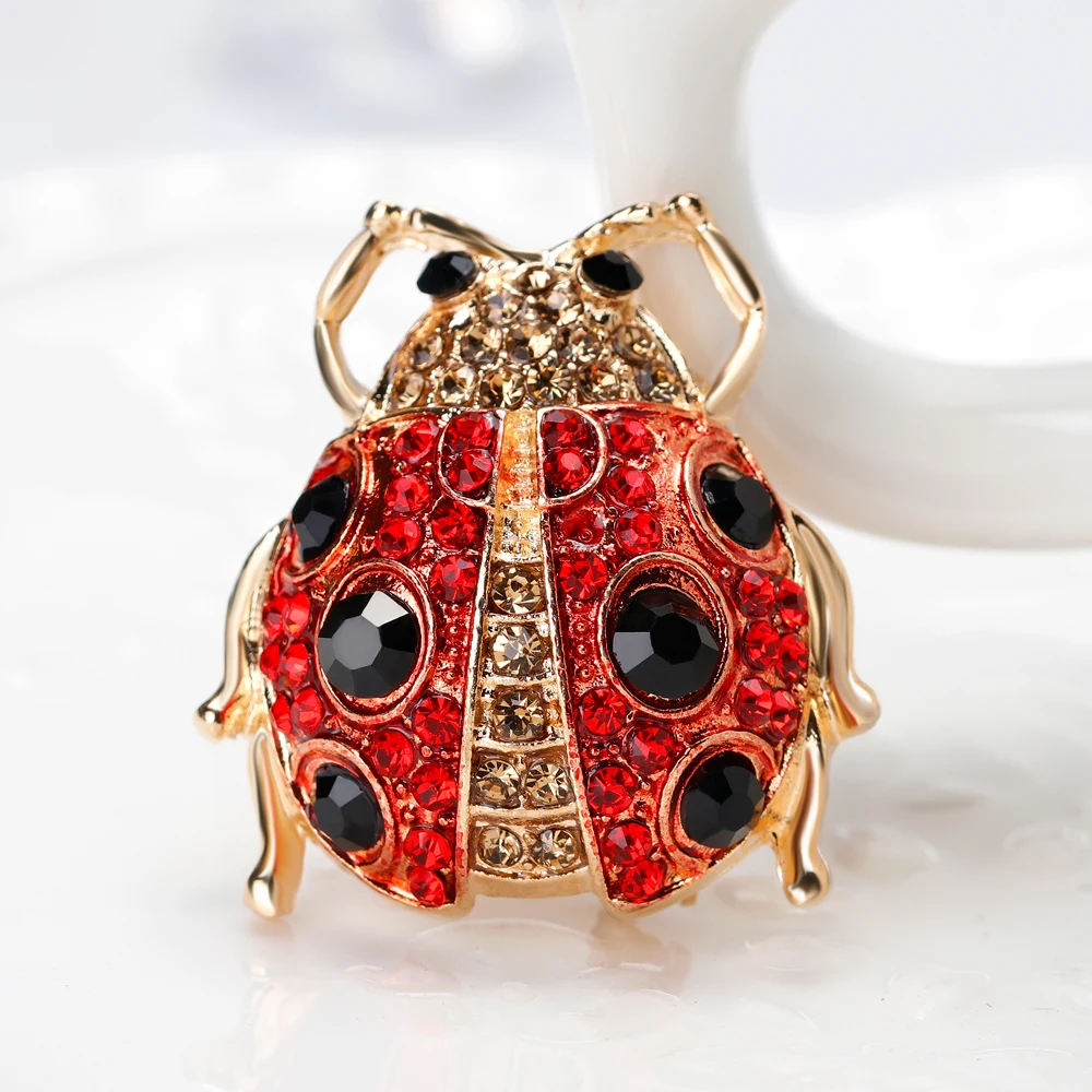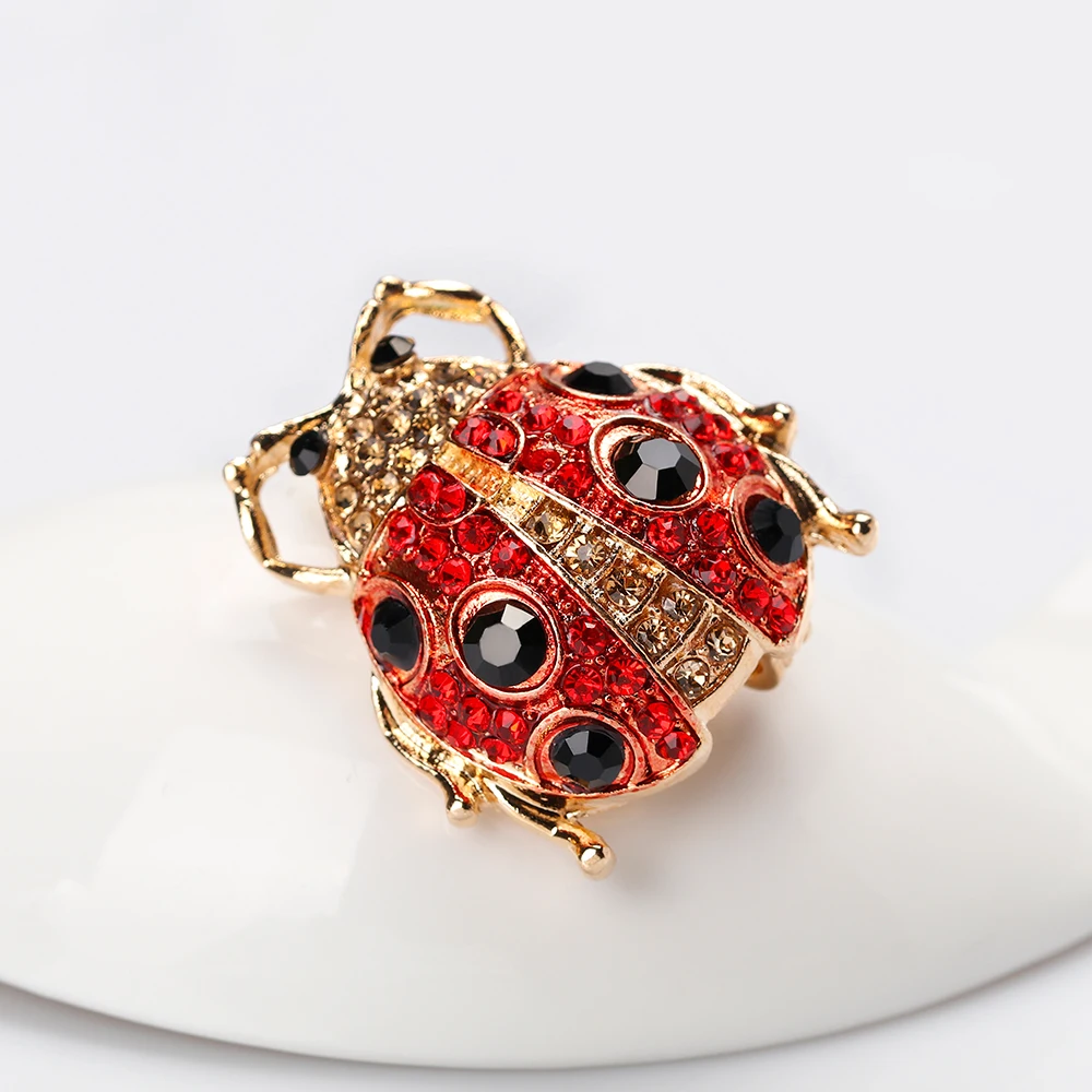 Rinhoo Броши с дикими животными божьей коровкой для женщин эмалированные Кристаллы ювелирные изделия аксессуары зимнее Рождественское украшение брошь в виде насекомого булавки