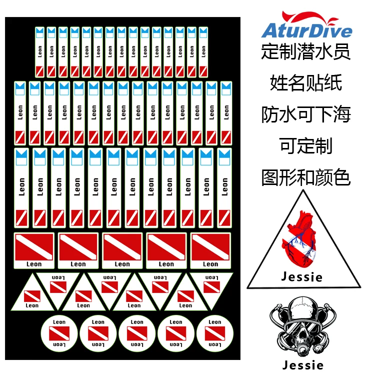 Наклейка на оборудование для Diver с именем, можно изготовить по индивидуальному заказу, с цветным рисунком, водонепроницаемая наклейка, название бренда для багажа.