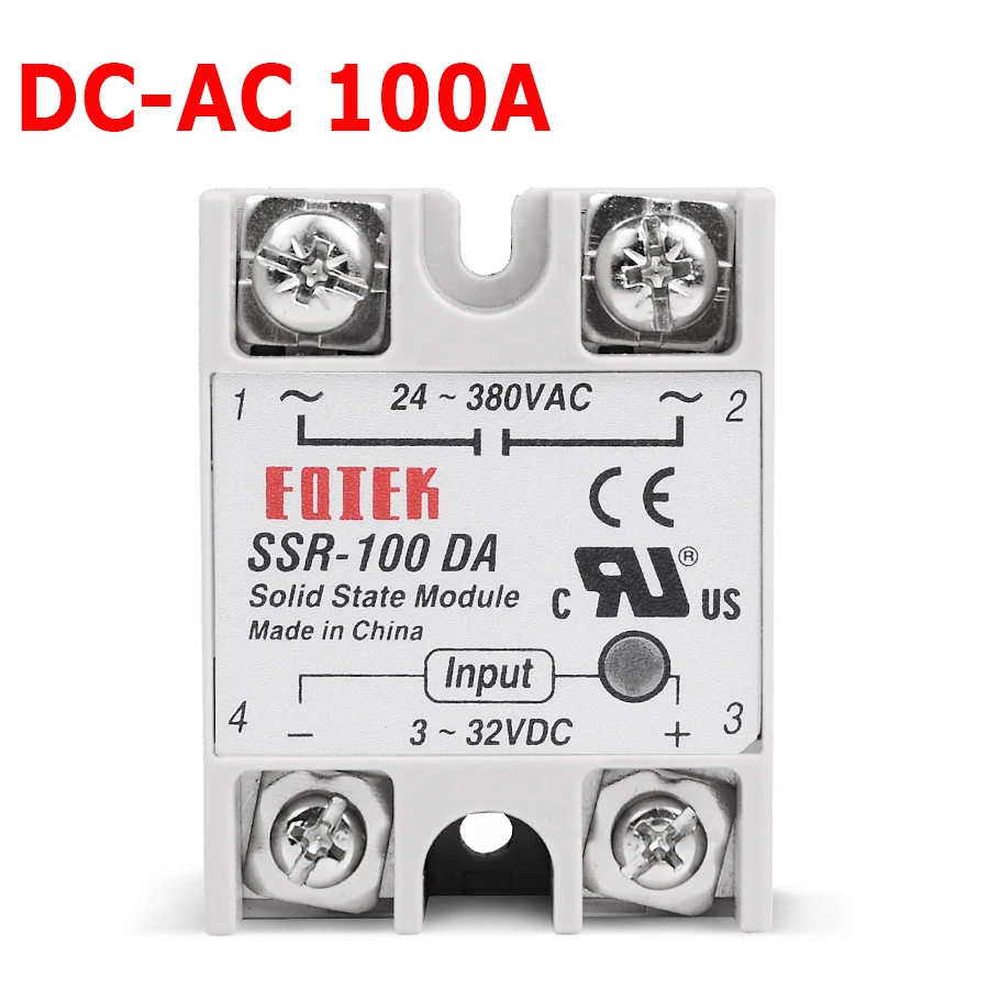 Промышленное реле 220 в, твердотельное реле SSR 3-32 В, вход постоянного тока и выход 24-100 В переменного тока, да, 100 А, выходная нагрузка SSR-100DA