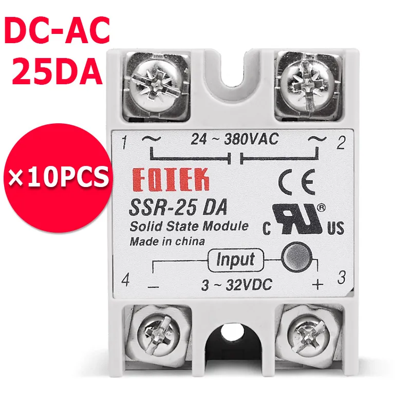Однофазный 10 шт./лот 25A DC В AC SSR твердотельные реле SSR-25DA 3-32 В DC Прямая поставка DC-AC