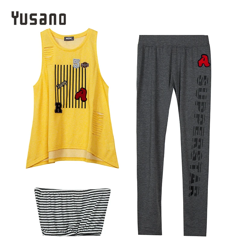 Женский пижамный комплект Yusano, комплект одежды для сна из 3 предметов, топ без рукавов, бюстгальтер, штаны с принтом в виде бревен, домашняя Wea