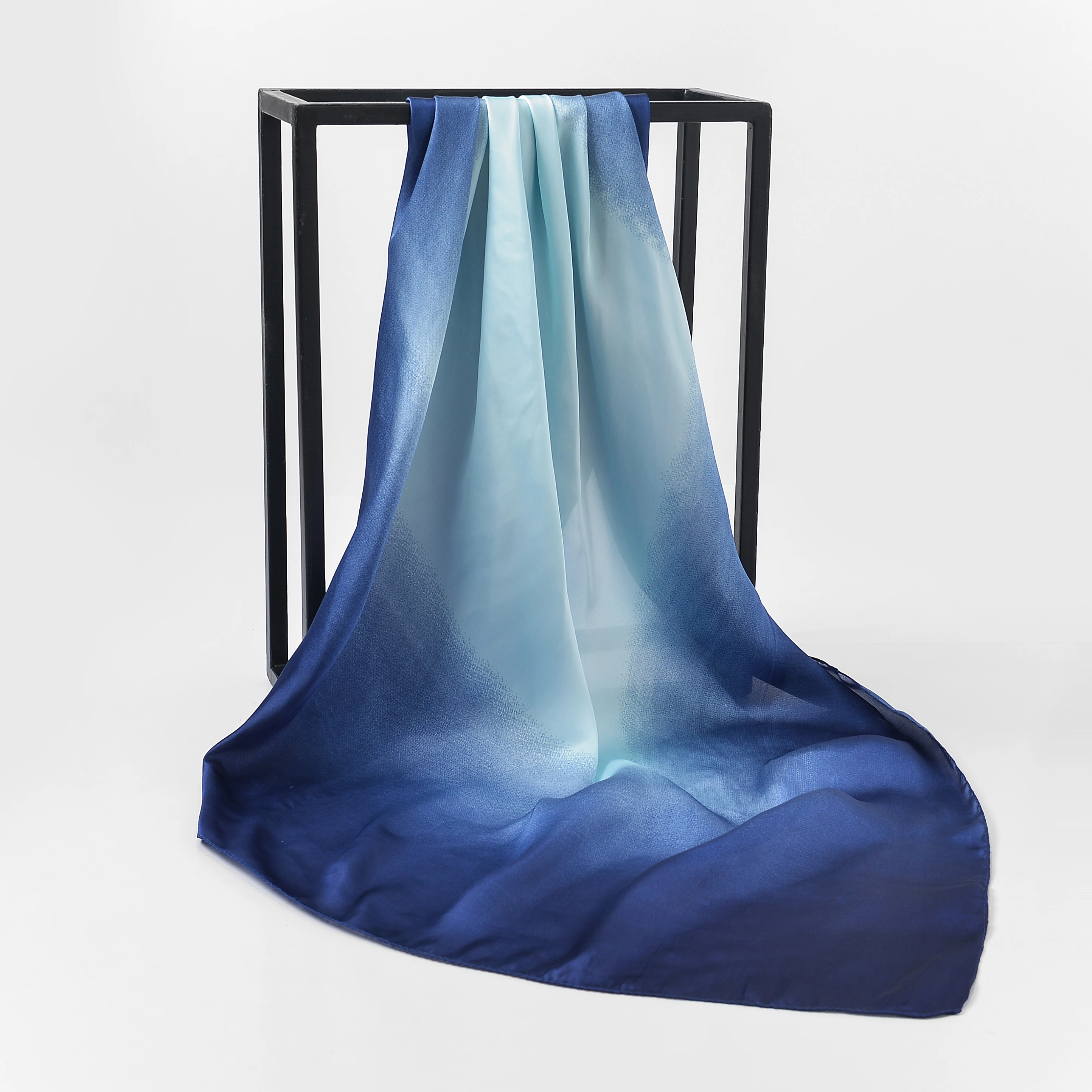 Платок женский, синий, квадратный, 90x90 см, 100% шелк, хиджаб