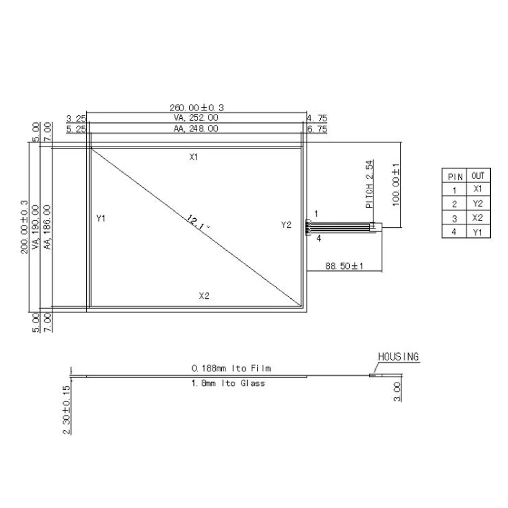 Монитор с резистивным стеклом 12,1 дюйма, двойной Мягкий сенсорный экран с USB-контроллером, 4 провода, 260*200, поддержка win7win8