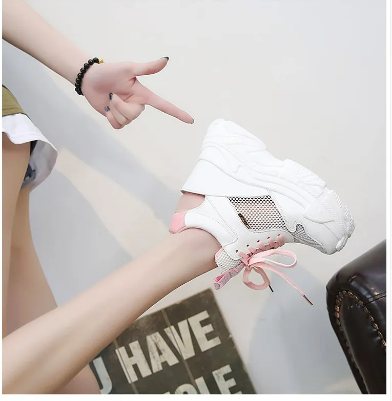 Новая повседневная обувь, женская обувь на плоской подошве, сетчатая дышащая обувь на танкетке 11 см, летние кроссовки, женские кроссовки