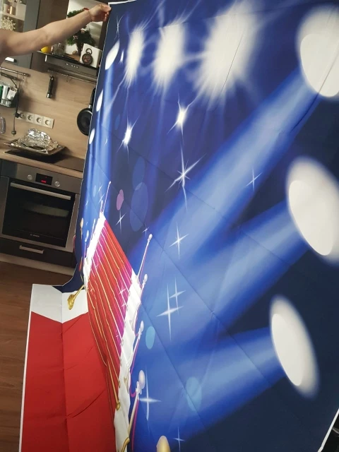 Фон для детской портретной фотосъемки с синим прожектором и блестящими звездами