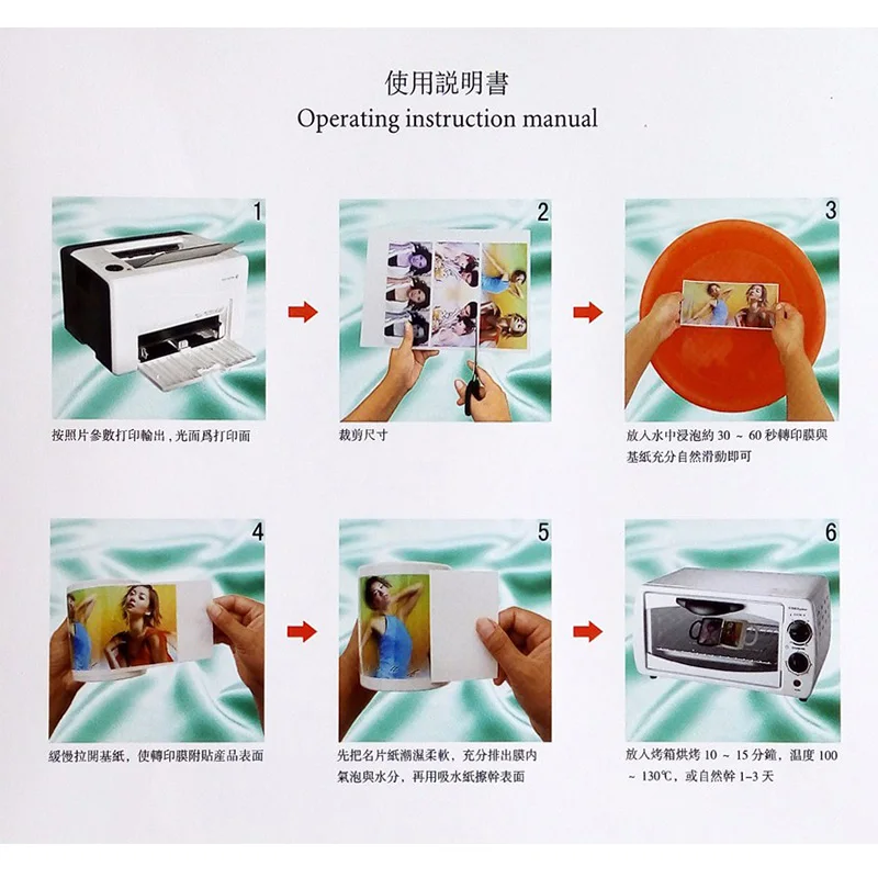 Распечатайте изображение в соответствии с фотопараметрами, зеркальная сторона-это печатная поверхность. DНанесите чернила на природу или феном Вырежьте его по периферии на 1 мм от рисунка. Замочите его в воде на 30-60 секунд, а затем надлежащим образом нанесите покрытие и бумагу. Медленно распределите основную бумагу, чтобы переводная печать наклейка для покрытия на поверхность изделия. Влажной и мягкой алебастровой бумаги, достаточно удалите пузырьки и воду из пленки, а затем высушите поверхность впитывающей бумагой. Выпекайте в духовке 10-15 минут при температуре 100-130 или сушите на природе в течение 1-3 днейИмя:Водная горка переводная бумага
