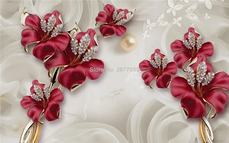 Пользовательская настенная ткань рельефные цветы ювелирные изделия фото настенные фрески обои для 3D гостиной ТВ фон домашний декор настенные бумаги 3D