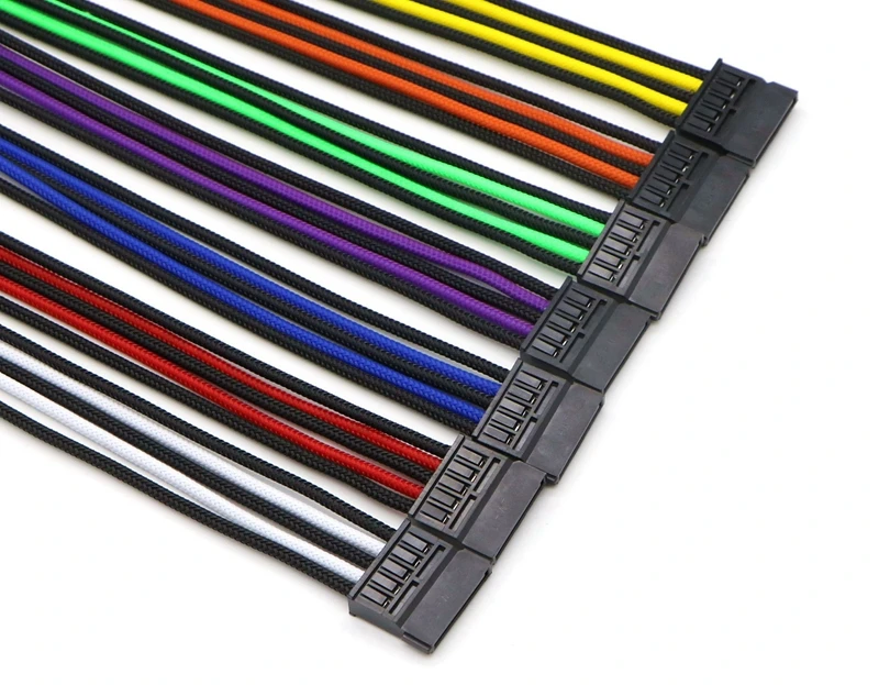 Разные цвета, один рукав, Sata 15Pin штекер-гнездо, удлинитель питания.