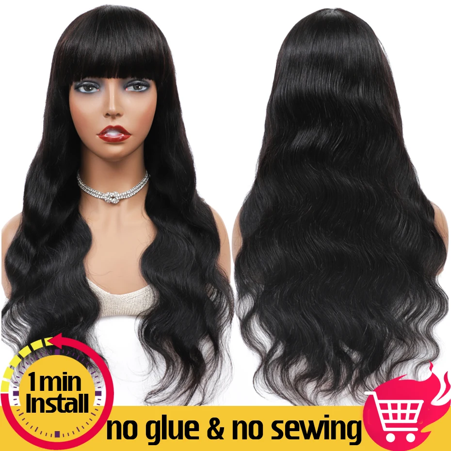 Перуанские прямые человеческие волосы парики с челкой парик машинно...