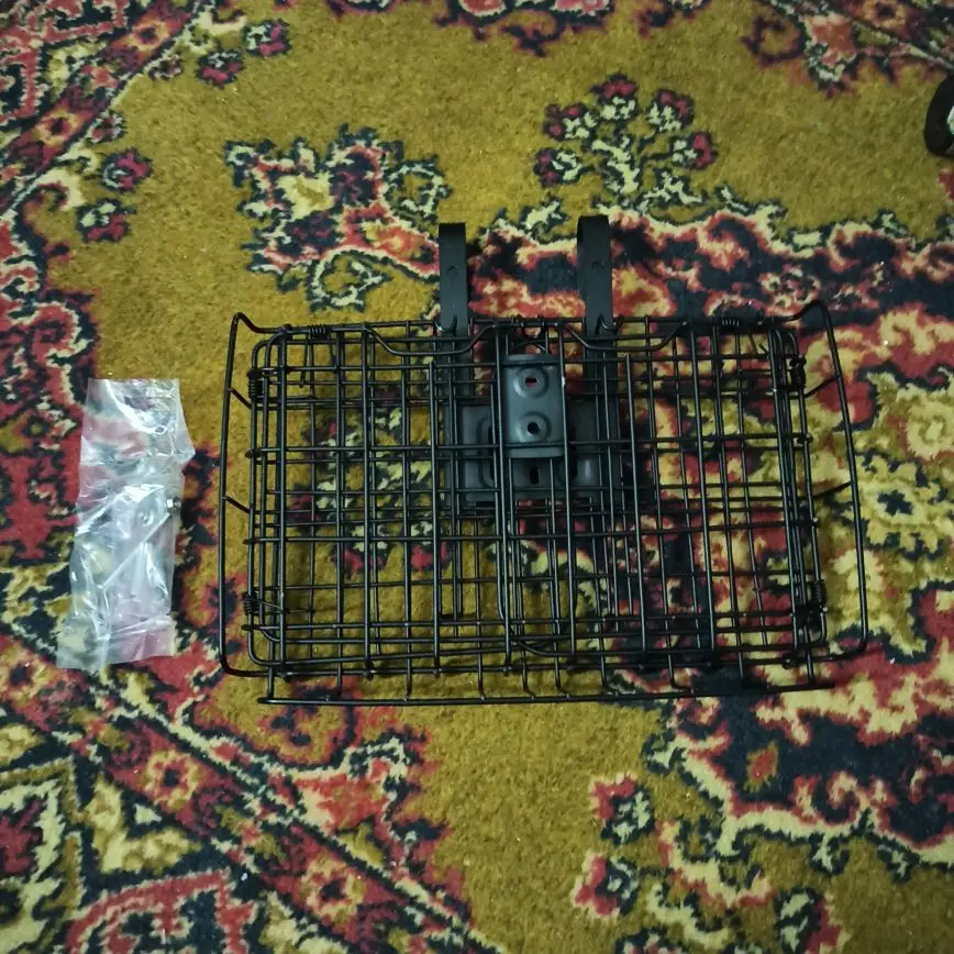 Заказ ждал 15 дней, в общем-то довольно таки нормальная складная стальная корзина, корзину закрепил не на руль а на передний багажник единственный косячок нижнее крепление под винты кривовато приварено ну ничего прикрутил всё таки, а так корзиной я доволен не плохая вещь!