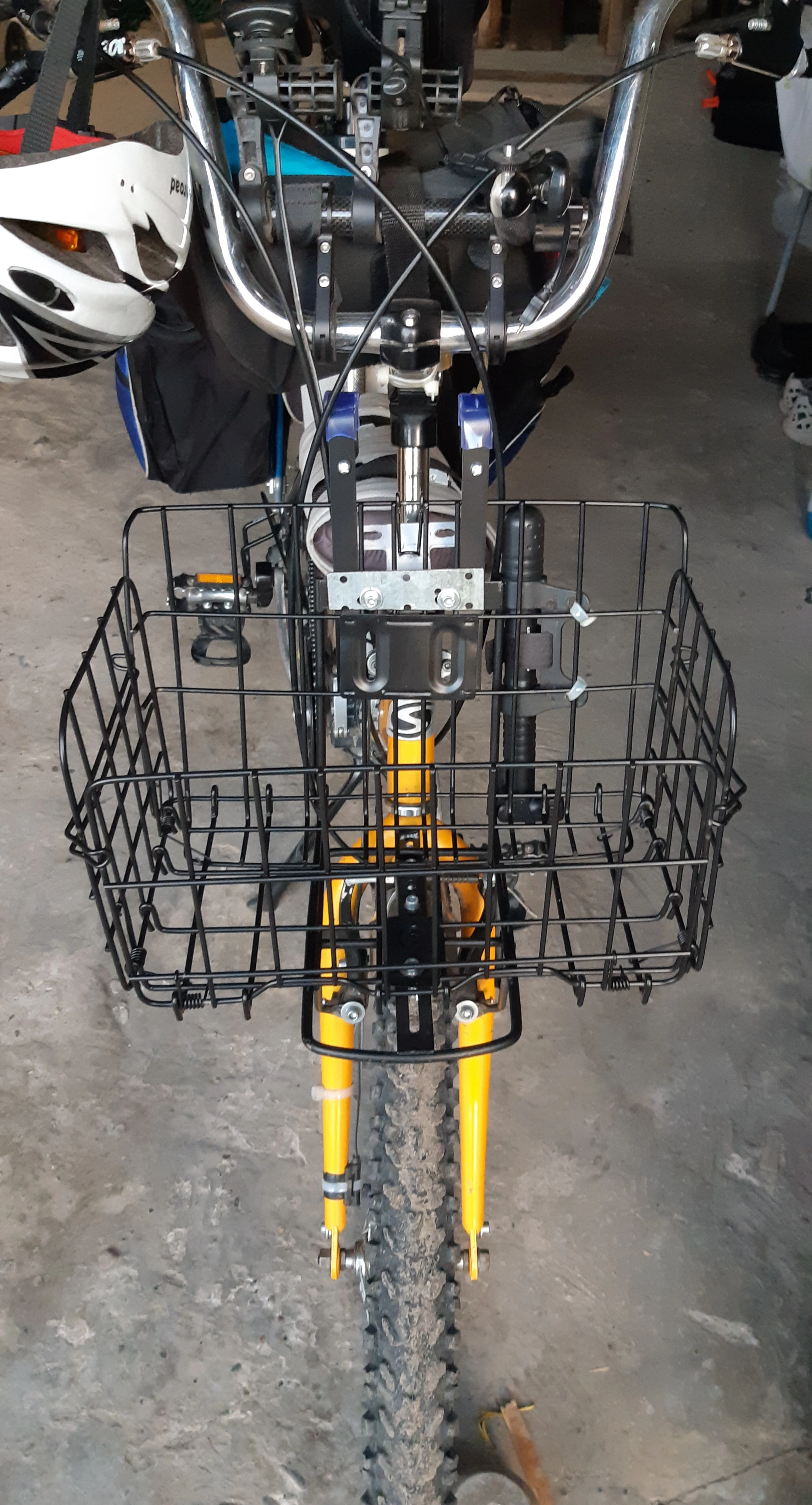 Корзинка крепкая, сделана аккуратно. Если не требуется постоянное складывание и не хочется, чтобы болталась на руле, необходимо крепление к вилке (в комплекте отсутствует). Доехала до Москвы за шесть дней.