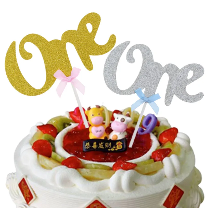 Один с бантом Снежинка звезда Торт Toppers с днем рождения золото с...