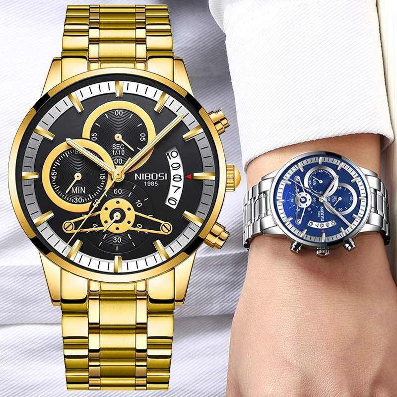 NIBOSI мужские часы, лучший роскошный бренд, мужские золотые часы, ...