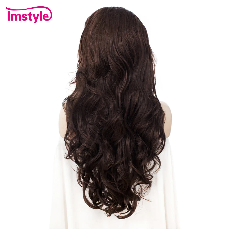 Imstyle темно-коричневый парик из синтетического кружева спереди, длинные волнистые парики для женщин, Термостойкое волокно, натуральный волос, повседневный парик для косплея