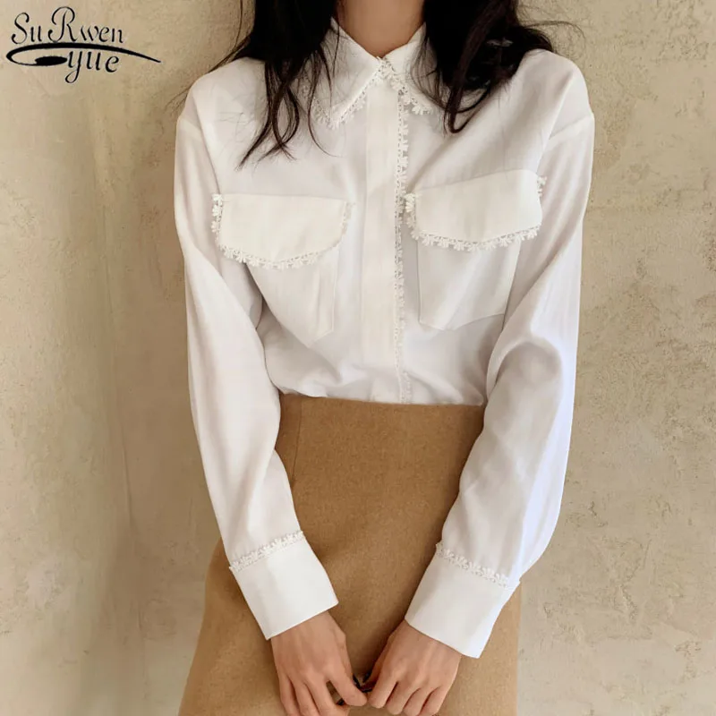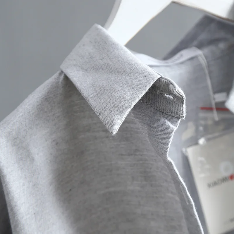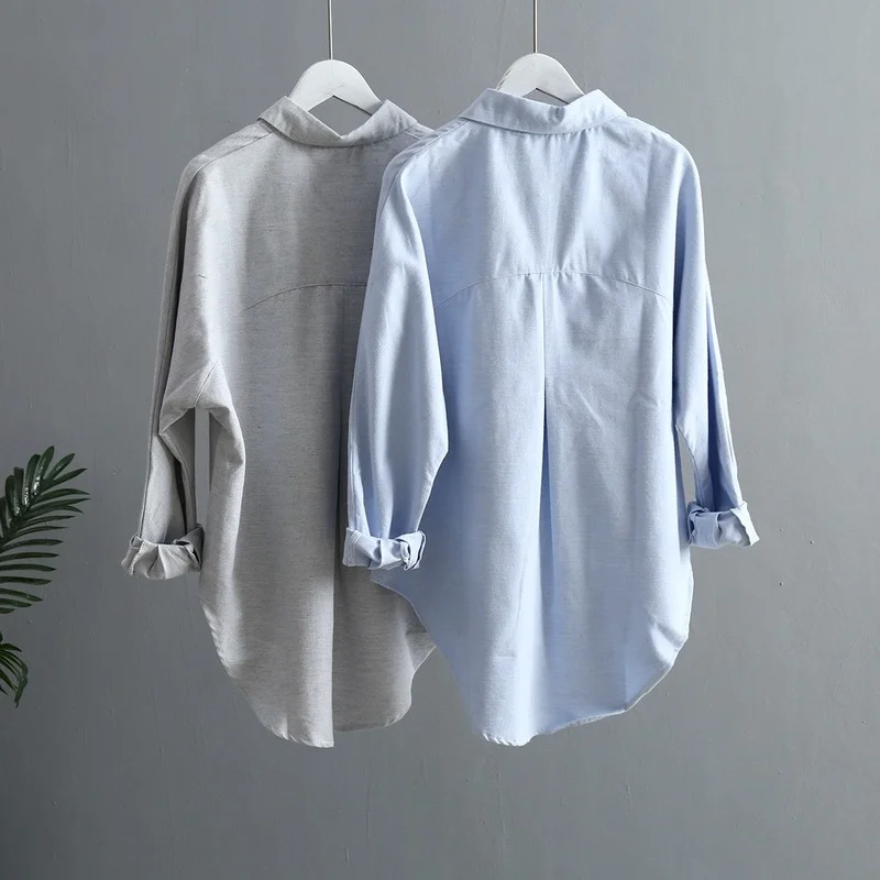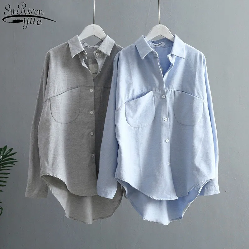 Блузка женская с длинным рукавом, однотонная хлопковая винтажная кофта в Корейском стиле, серый топ с карманами, одежда 2021, осень 6658