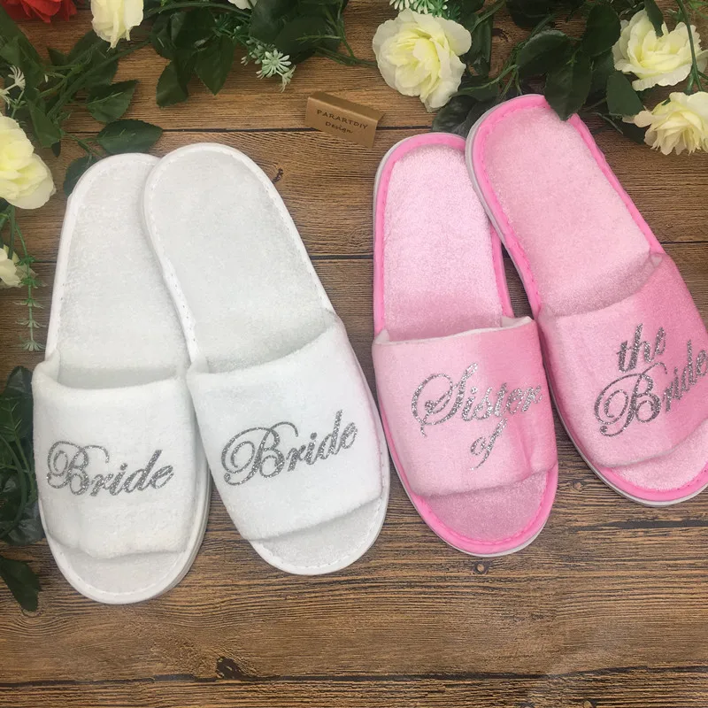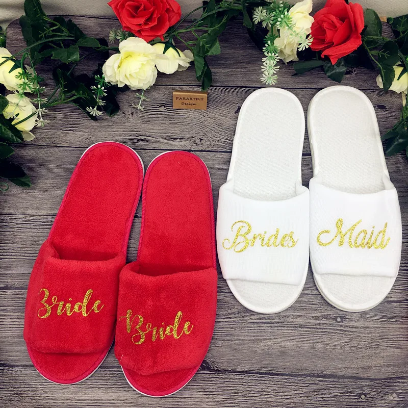 Тапочки подружки невесты, Индивидуальные свадебные тапочки, свадебные тапочки вечерние тапочки для невесты, тапочки для невесты, спа-Тапочки