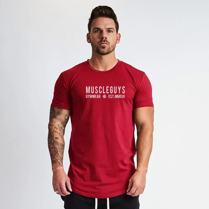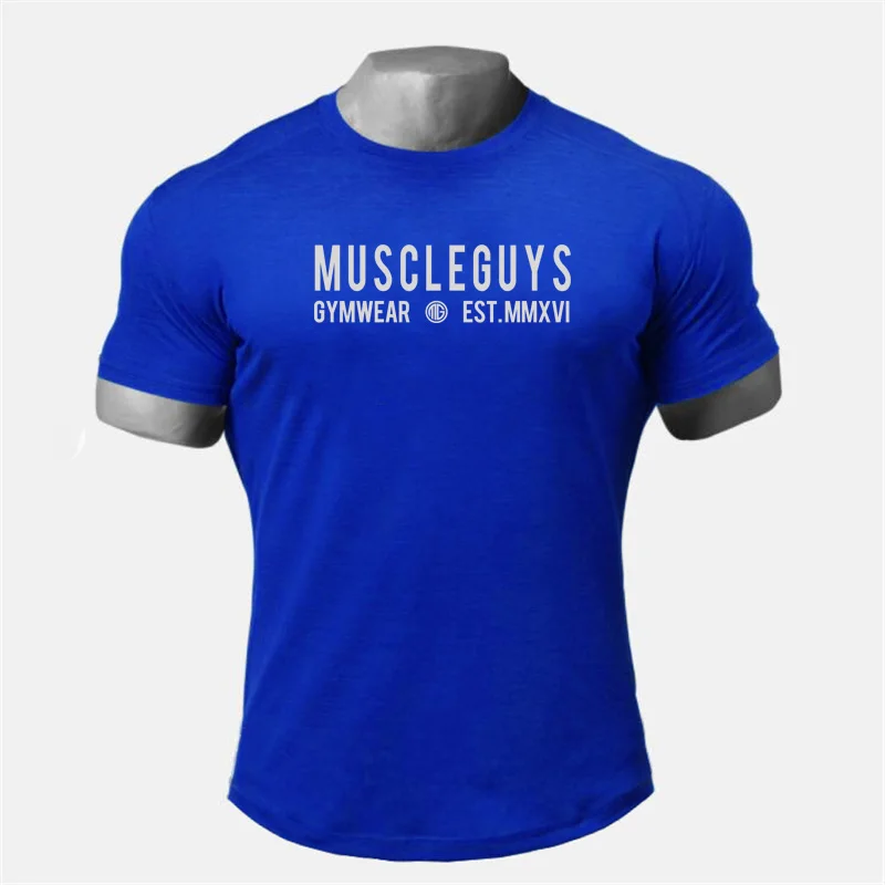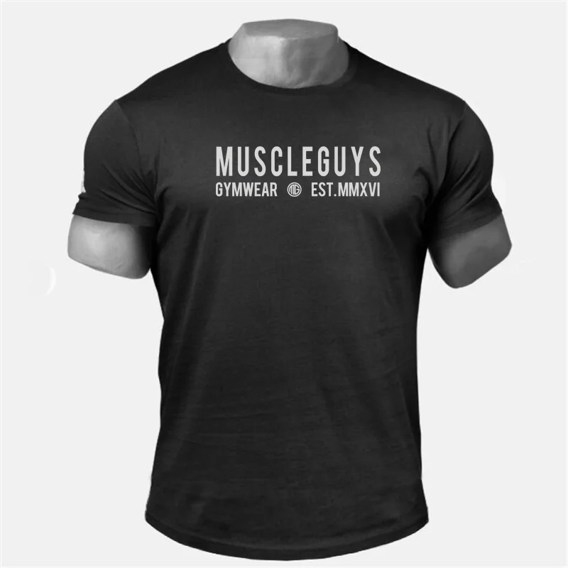 Новая облегающая футболка для мужчин Бодибилдинг Фитнес Одежда Спортивная футболка для спортзала, хлопковая футболка с короткими рукавами, тренировки мышц рубашка