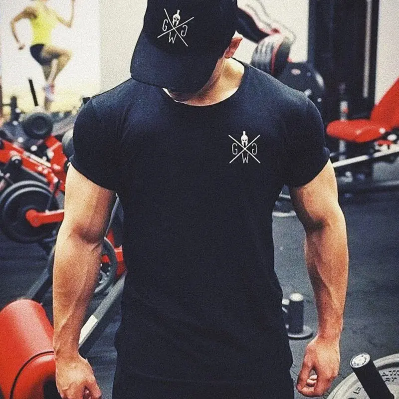 Футболка мужская повседневная с принтом, хлопок, короткий рукав, приталенная, для спортивного зала, фитнеса, лето 2018