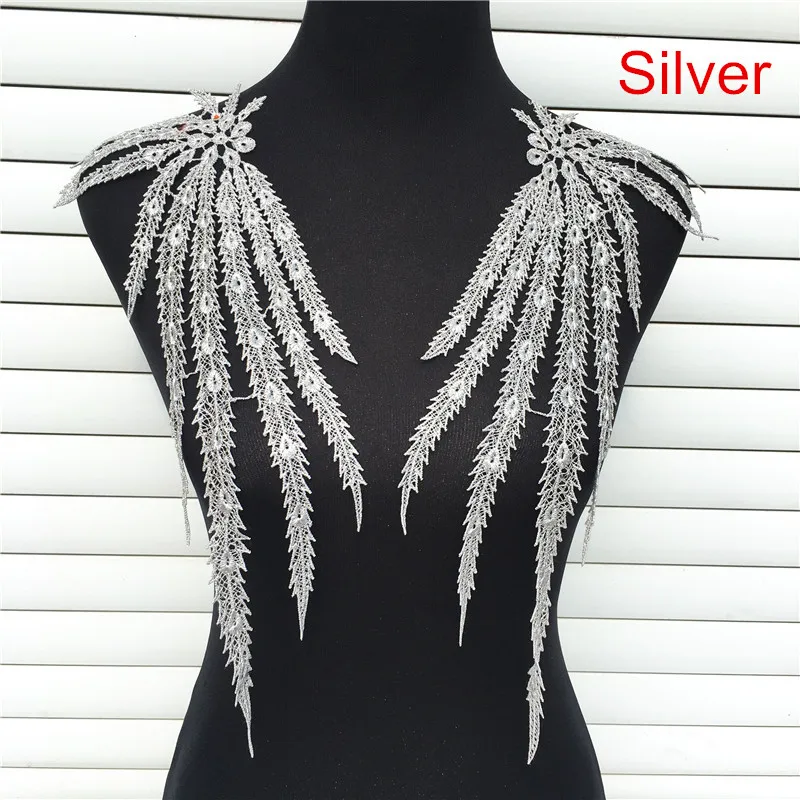 1 пара золотистых вышитых венозных кружевных тканей для шитья декольте Воротник Аппликация Фениксперо павлина Diy аксессуары для платья