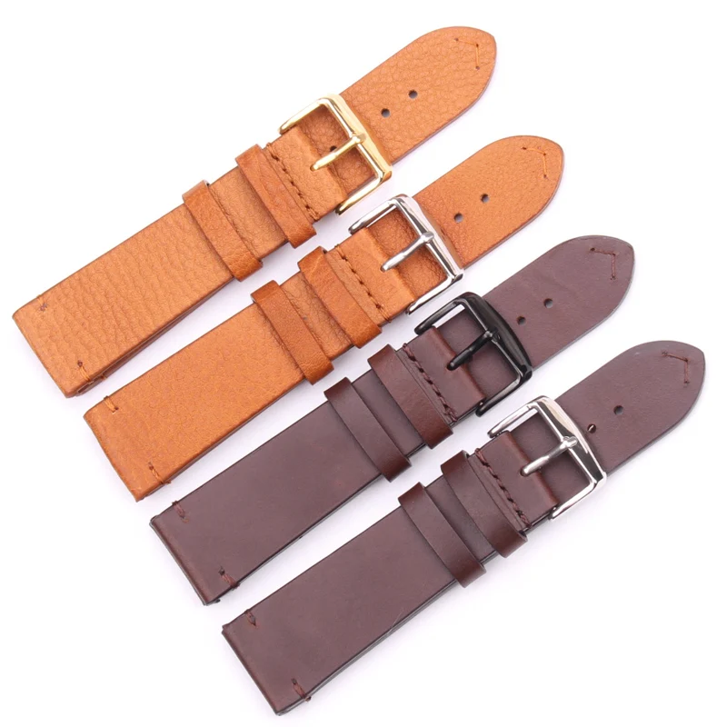 Ремешок HENGRC из натуральной кожи для наручных часов, ретро браслет со стальной пряжкой, весенний, светло-коричневый, темно-коричневый, 18 мм 20 мм 22 мм