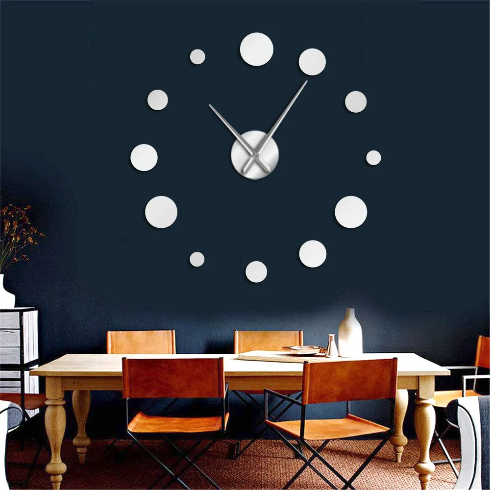 Круглые зеркальные большие настенные часы, простой современный дизайн, бескаркасные гигантские настенные часы, аксессуары для домашнего декора, подарки для любителей DIY