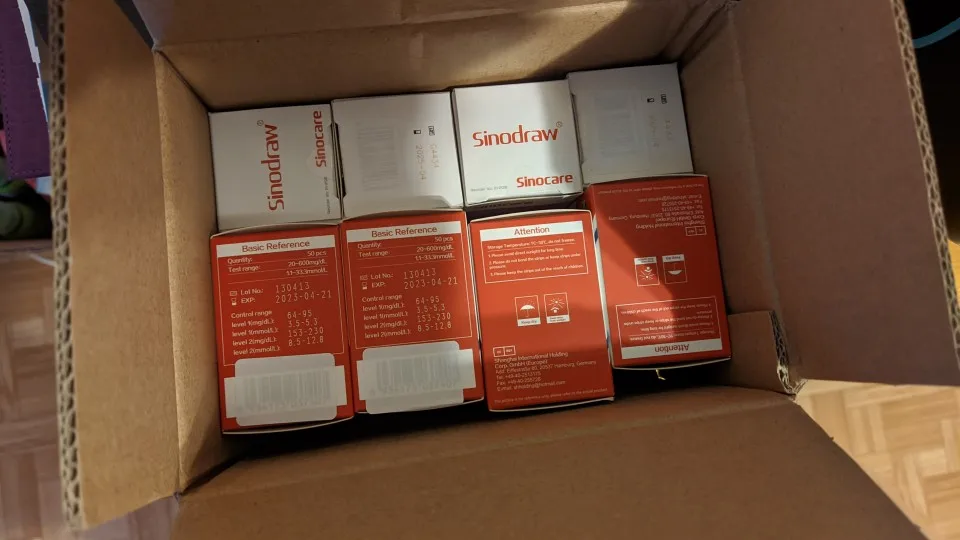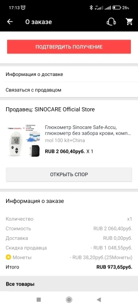 Доставили за 15 дней с момента заказа. Показания один в один со вторым глюкометром.