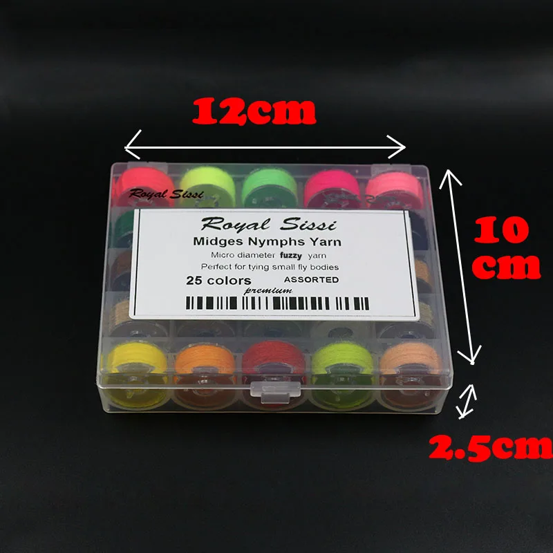 Новинка, 25 цветовнабор, нимфы, пряжа с микродиаметром, пушистая пряжа для небольших мушек, сухая нить для вязания мушек, материалы для завязывания
