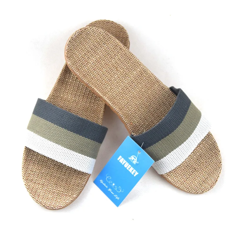 FAYUEKEY, новинка 2018 года, модные летние домашние льняные Нескользящие дышащие тапочки, мужские домашниеНапольные пляжные сланцы на плоской подошве для мальчиков