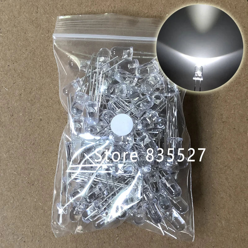 100 шт.лот F5 5 мм круглый светодиод, водочистый и белый супер яркий светодиод, комплект светоизлучающих диодов, DIP лампы, бусины
