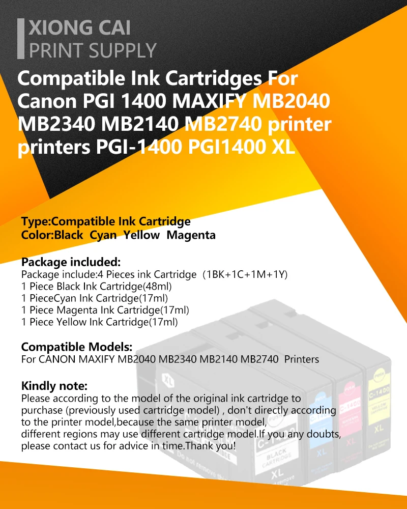 4X XiongCai совместимые чернильные картриджи для Canon PGI 1400 MAXIFY MB2040 MB2340 MB2140 MB2740 принтеры PGI-1400 PGI1400 XL