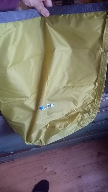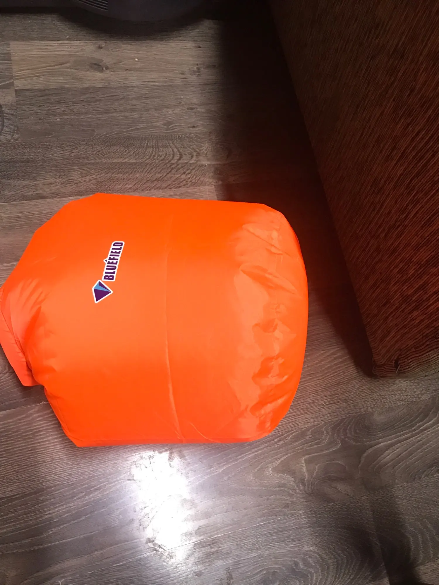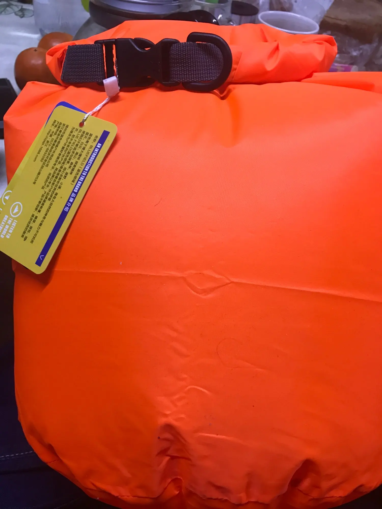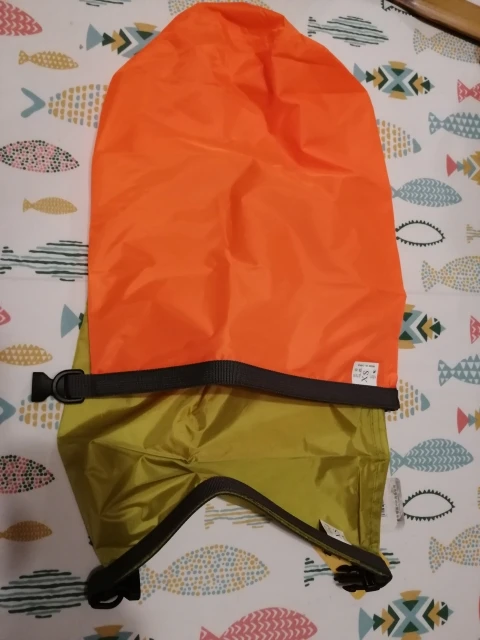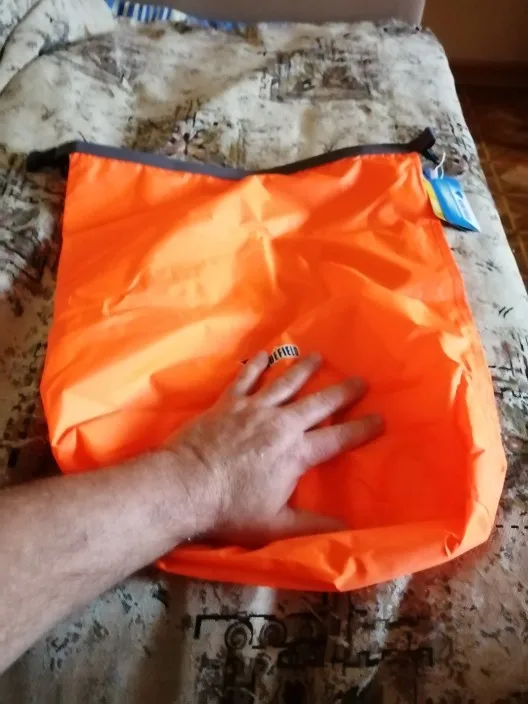 Пришло быстро. Отслеживалось. Ткань похожа на герметичную. Но замка как такового нет. Это просто подворот в пару слоёв. От дождя достаточно будет. Плавать не стоит.