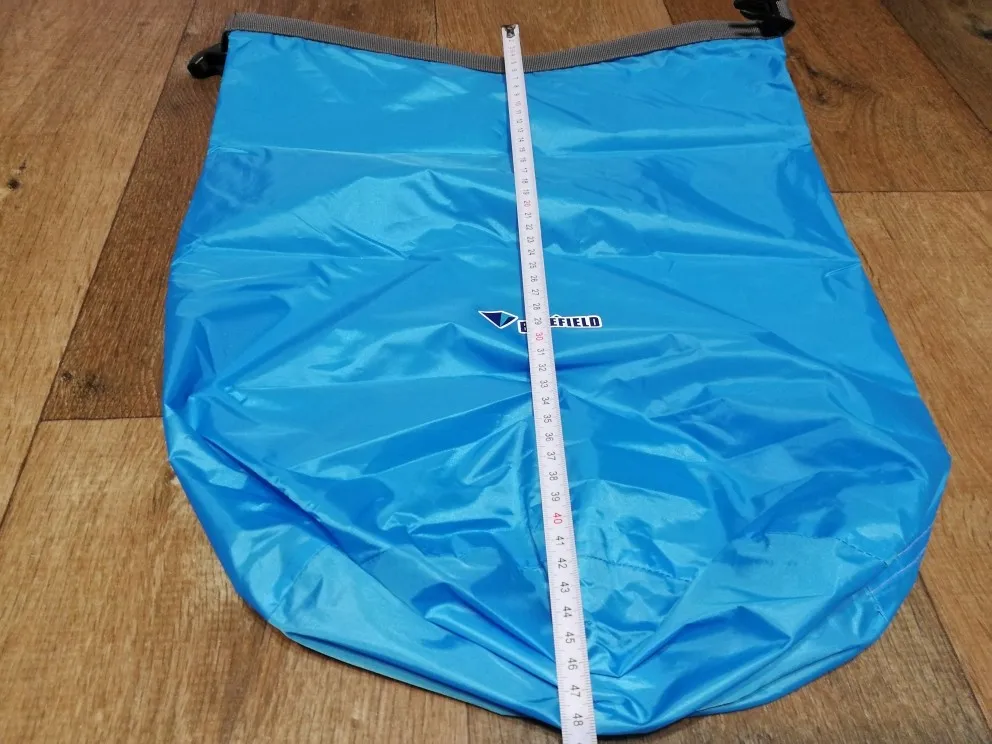 Я заказал на 20 литров. Размеры на фото. Учтите, что размеры даются на сайте в габарит мешка, и при планировании загрузки необходимо вычитать тройной подворот. Для среднего рюкзака однодневного похода рекомендую мешок на 30л. Мой небольшой рюкзак помещается в 20 литровый мешок, но входит туго, в лодке удобно быстро доставать, поэтому советую брать больше. Закажу второй на 40литров и ещё один на 70 но у другого продавца, там дешевле.