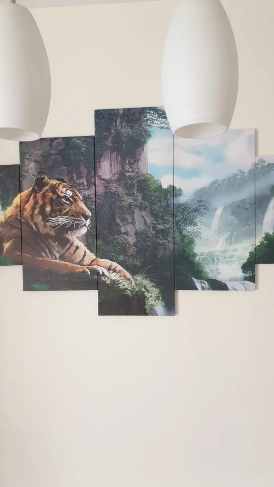 Настенная Картина на холсте, 5 панелей, тигр, гора, водопад, картин...
