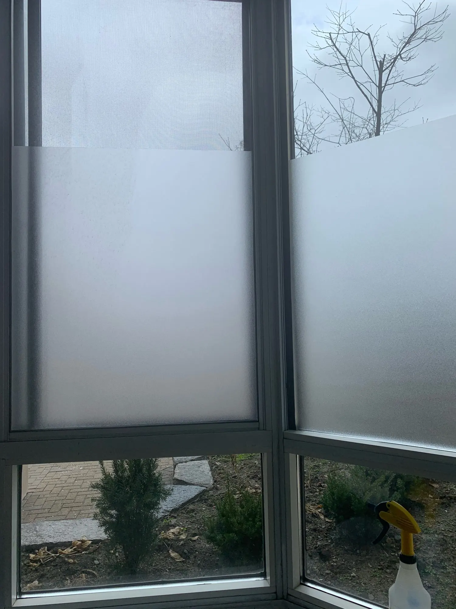 Он хорошо работает и был довольно прост в применении. Никаких следов шелушения и пузырьков под пленкой. Идеальный инструмент для конфиденциальности и отличная идея. Мы порекомендуем этот продукт всем, кто нуждается в покрытии окна. Идеально!