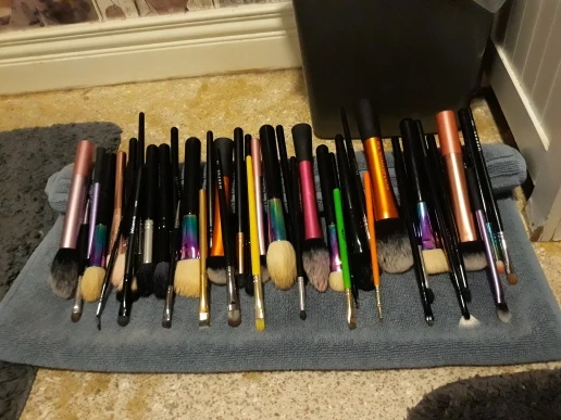 Доставка за 2 недели на кассу магазина. Товар соответствует заявленному, плюс одну кисть положили в подарок. Мытье пережили достойно, запаха нет. Две маленькие подрещаны, а 3 маленькая какая то куцая что ли. Но в целом все хорошо.