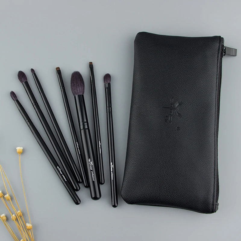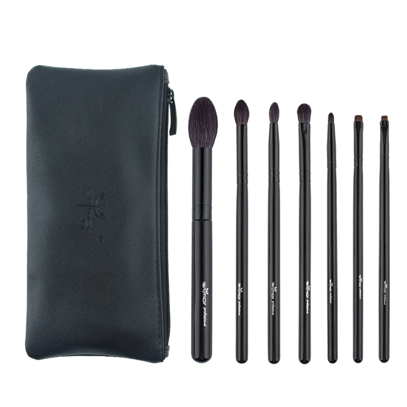 Кисть Anmor из козьего волоса с деревянной ручкой для макияжа, инструменты для растушевки теней и набор кисточек для макияжа, 7 шт., высокое качество, Хайлайтер для бровей