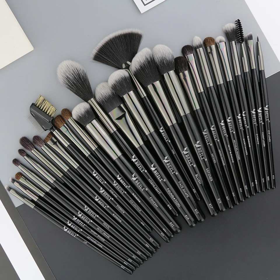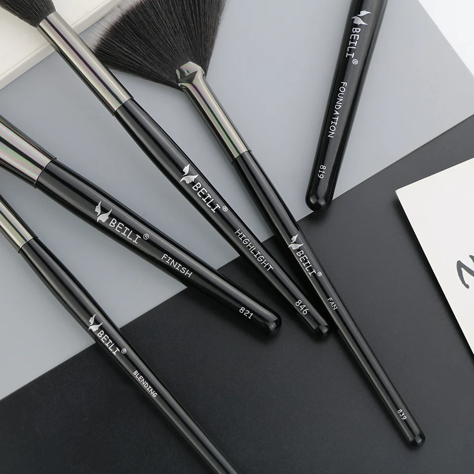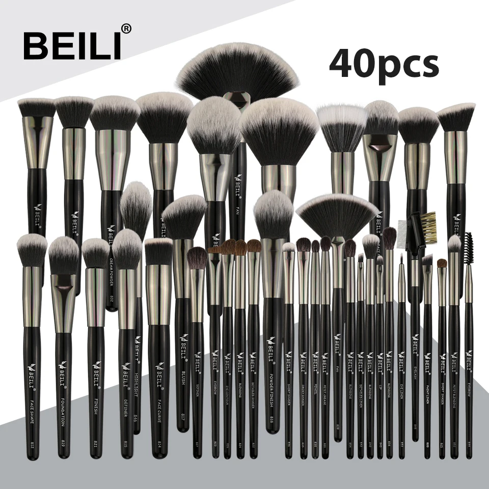 Набор кистей BEILI для макияжа, профессиональные мягкие натуральные кисти для растушевки пудры, основание веера бровей, черный цвет, 40 шт.