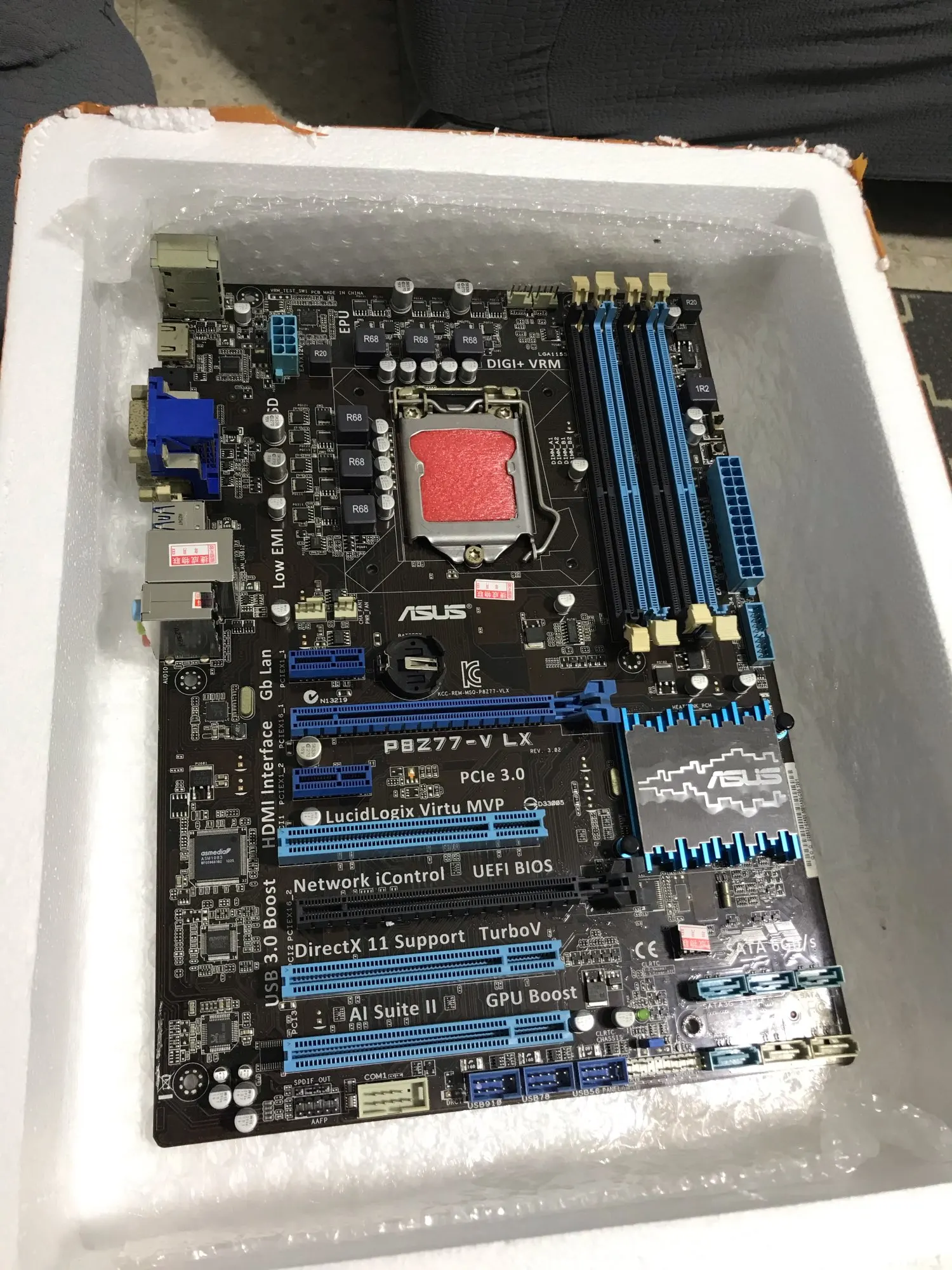 Материнка приехала живая, упаковка очень не плохая - слоёв 10 пупырки в пенопластовой коробке. Задняя стенка в комплекте. Из минусов - её либо мыли и не досушили, либо она лежала в сыром подвале - окислы на всех алюминиевых частях. На олове и радиаторе чипсета следов нет. Сокет прикрыт вспененным полиэтиленом. Ноги все целы. Все слоты работают, Биос был 0601, обновил до 2504 (могу с последними цифрами ошибаться, уже забыл). Спокойно завелась с Xeon E3-1270 v2. Если нужна норм мамка под уже имеющийся проц - то можно и взять, если нет страха б/у вещей.