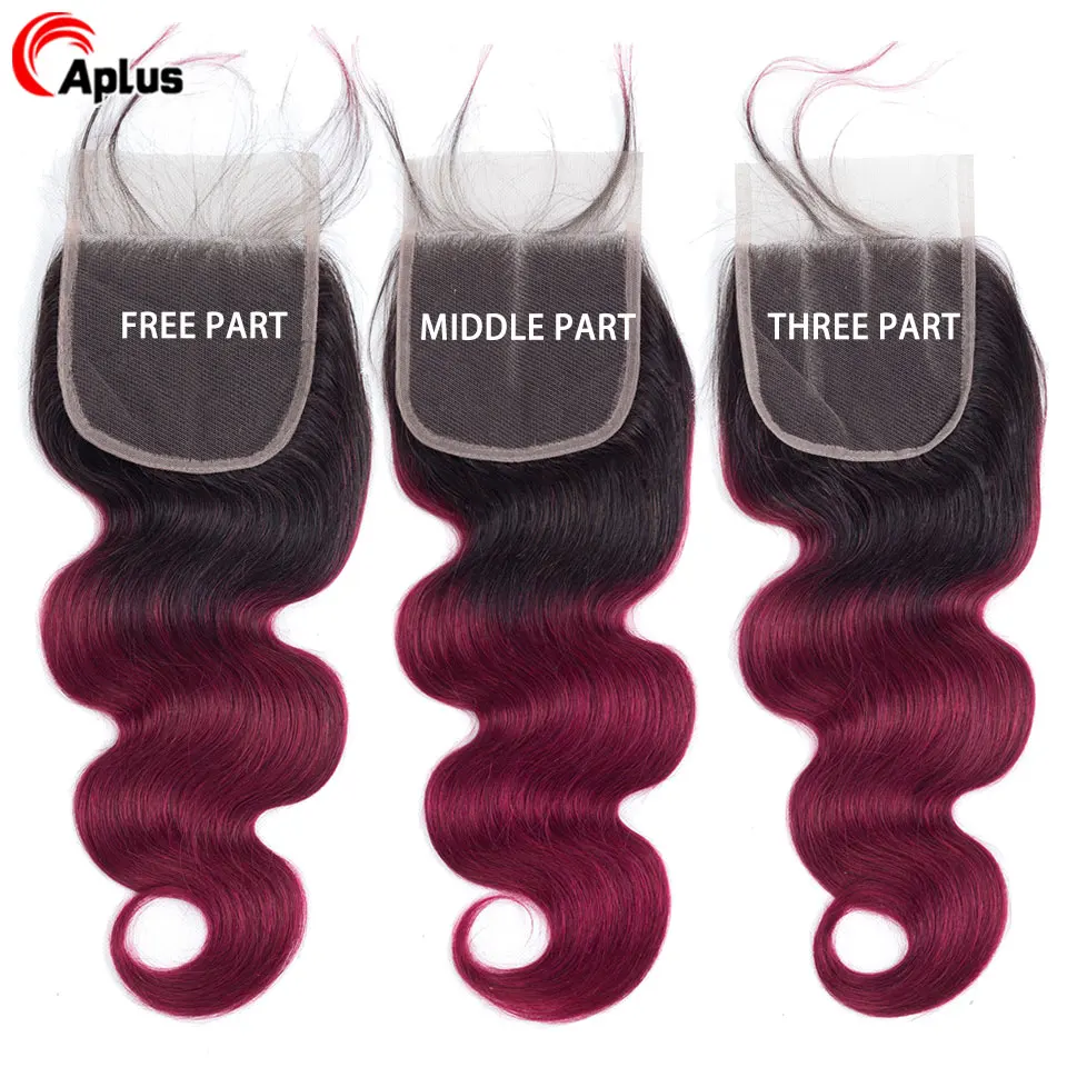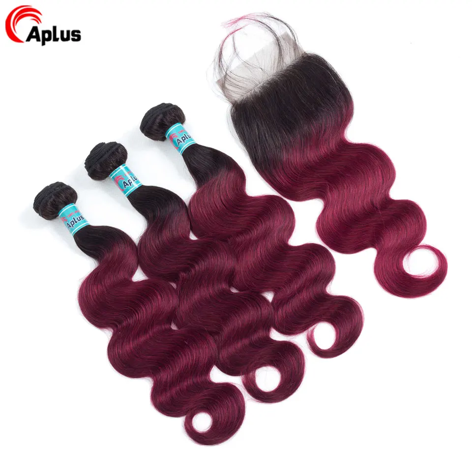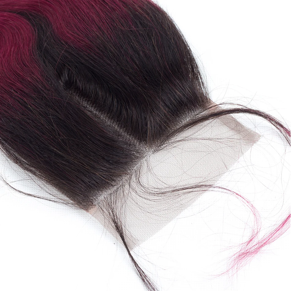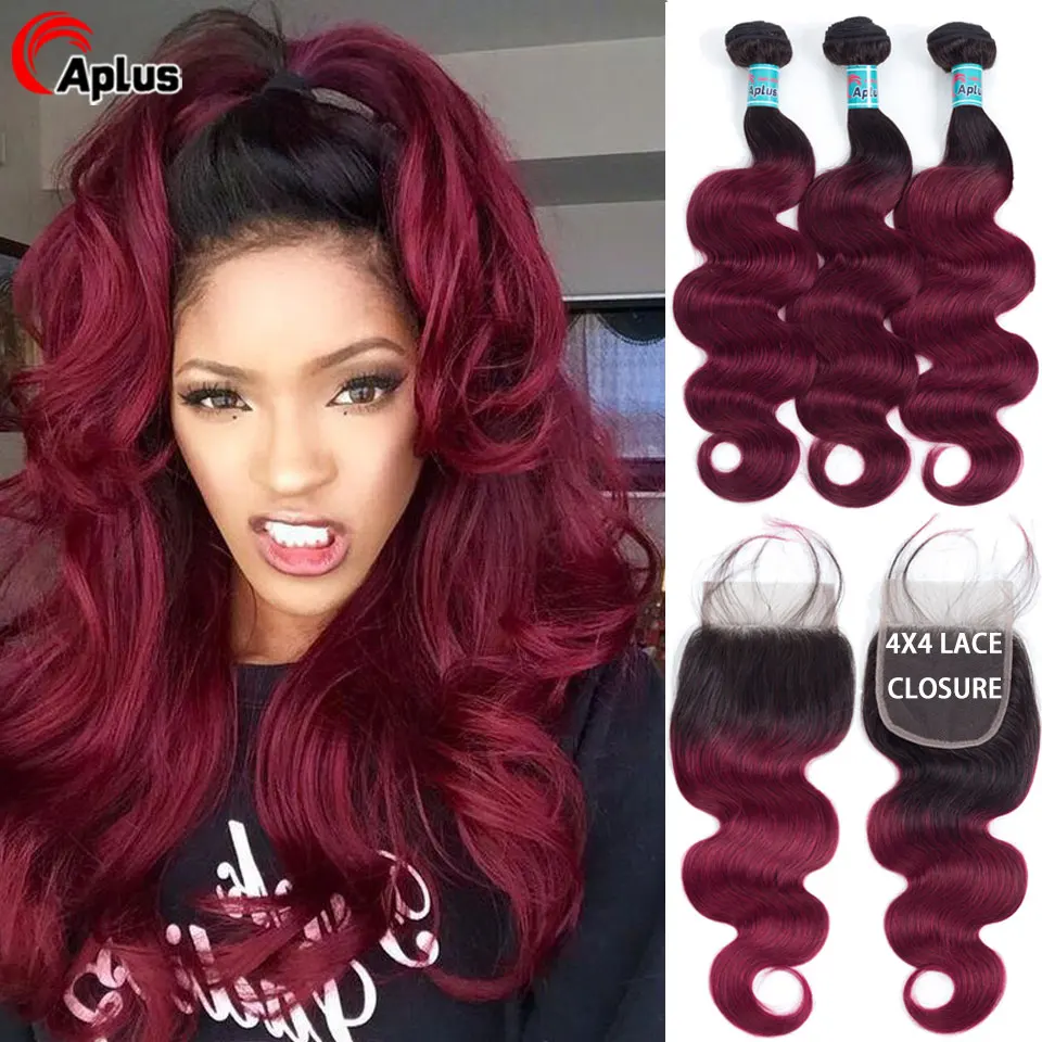 Омбре бордовые пучки с закрытием, предварительно окрашенные 99J пряди с закрытием, волнистые медовые светлые человеческие волосы, бразильские волосы Remy