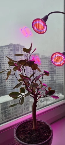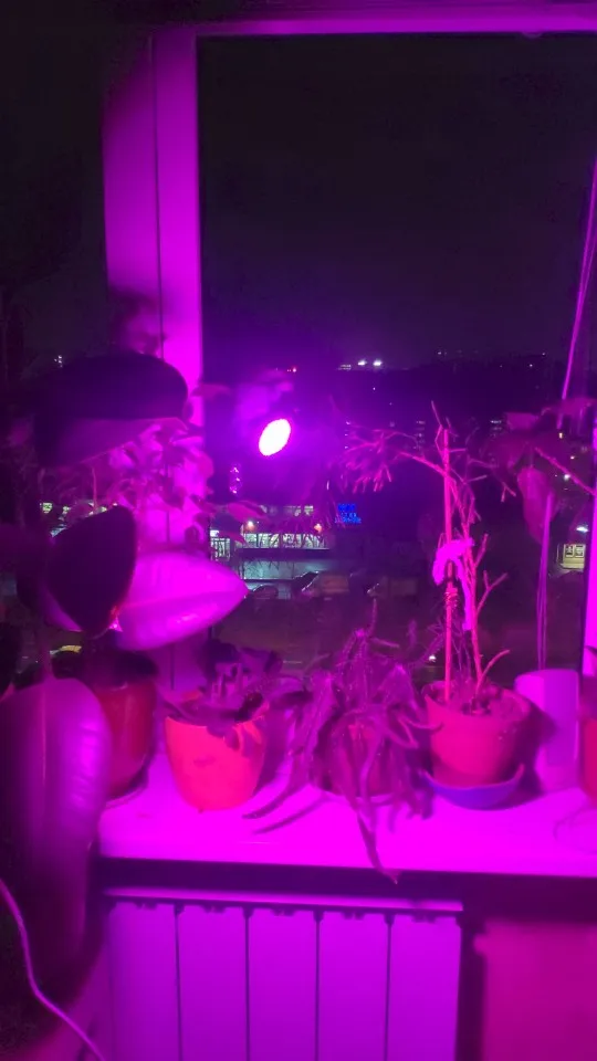 У меня дома растет ипомея и не знаю почему, но у нее листья становятся без хорошего дневного света вялыми. Скоро холода и держать на балконе не будет возможности, поэтому заказала лампу. После дня на подоконнике эти «блины» под лампой все же вернули себе твердость листа бумаги, значит лампа определенно работает) и еще была очень удивлена, когда заказала не самую большую по числу диодов лампу, а в руке она оказалась просто огромной)
