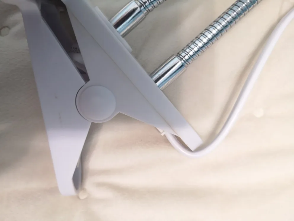Очень крепкая прищепка на светильнике! Можно закрепить на поверхности толщиной 5 см! Я смогла зацепить даже за ручку окна.