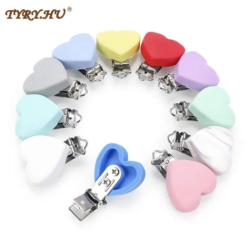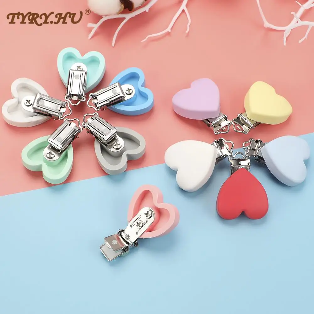 TYRY.HU силиконовый жевательный Детские зажимы для соски в форме сердца, металлические зажимы для соски, аксессуары для DIY соска, зажимы для цепи
