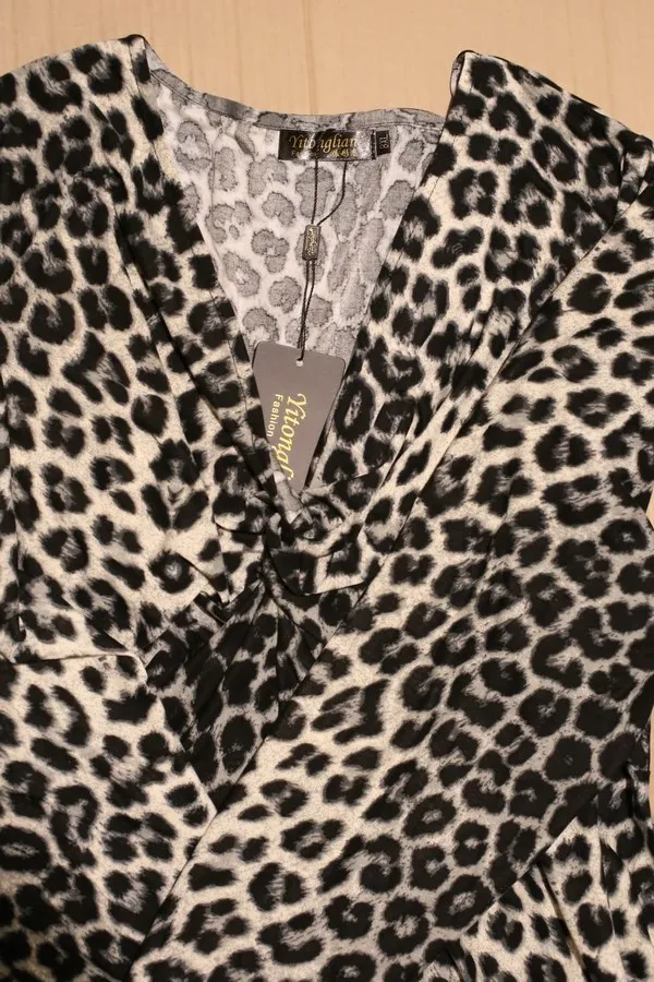 Блузки YTL женские леопардовые, с глубоким V-образным вырезом и длинным рукавом, размера плюс, H088