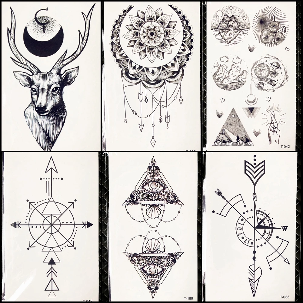Очаровательная черная луна, временная карандаш для татуировки, наброски, браслет «Олень», очаровательные женские тату-наклейки, компас, подвеска, фальшивые татуировки, ручная Мужская