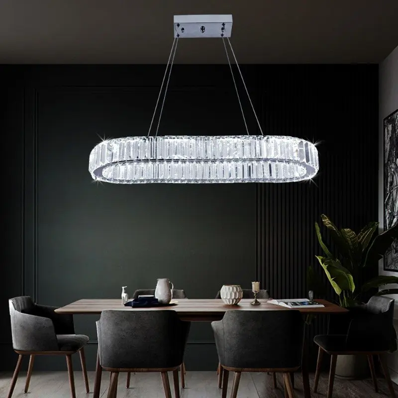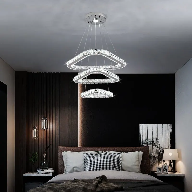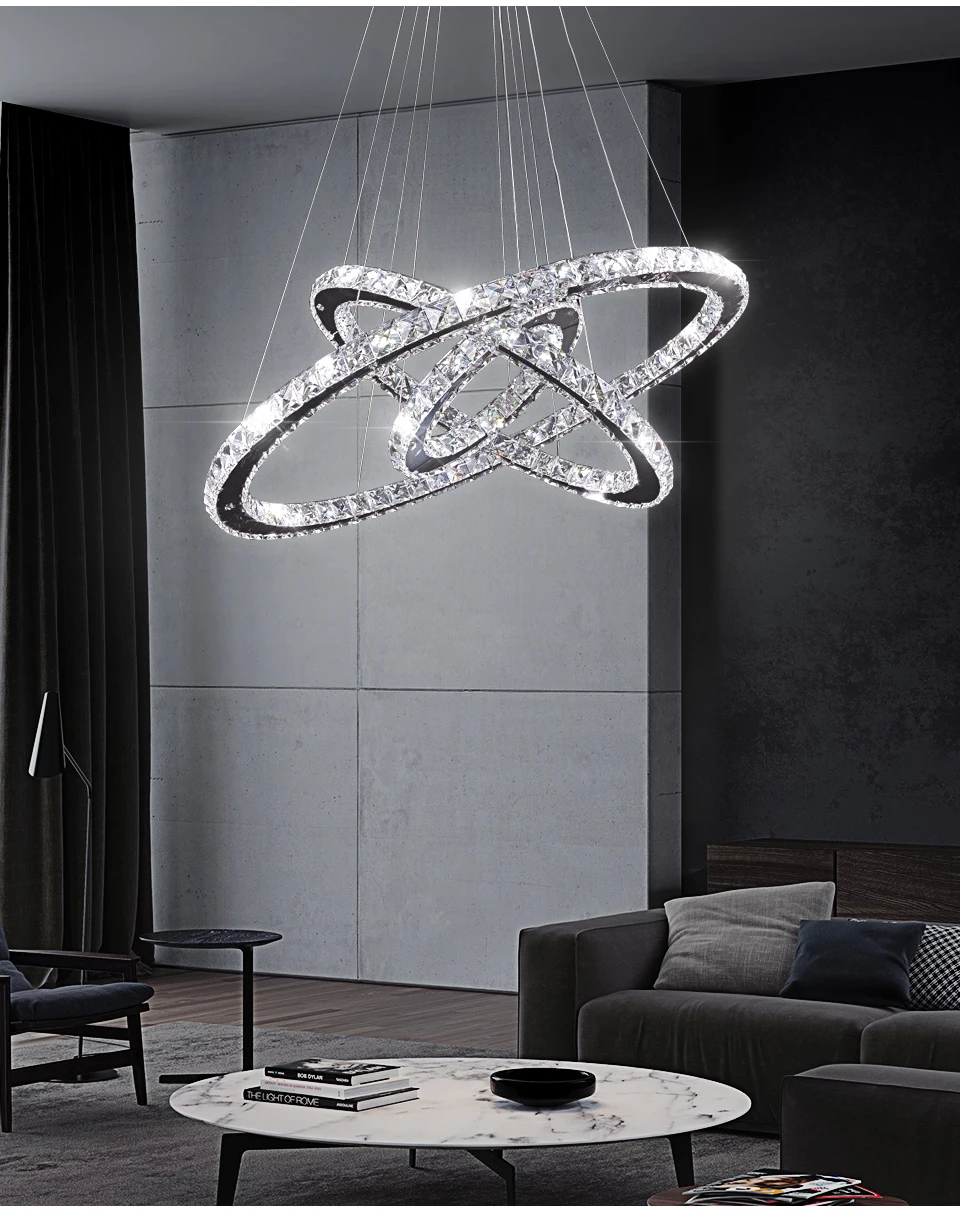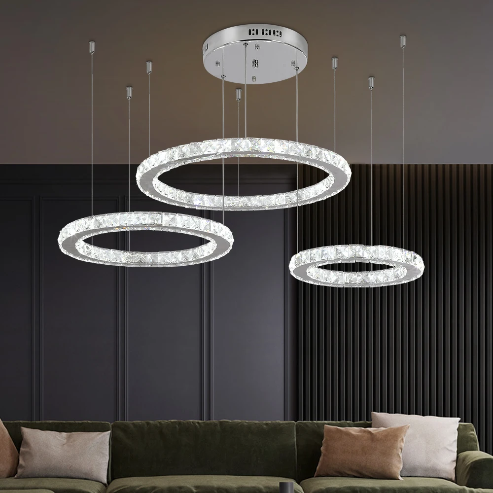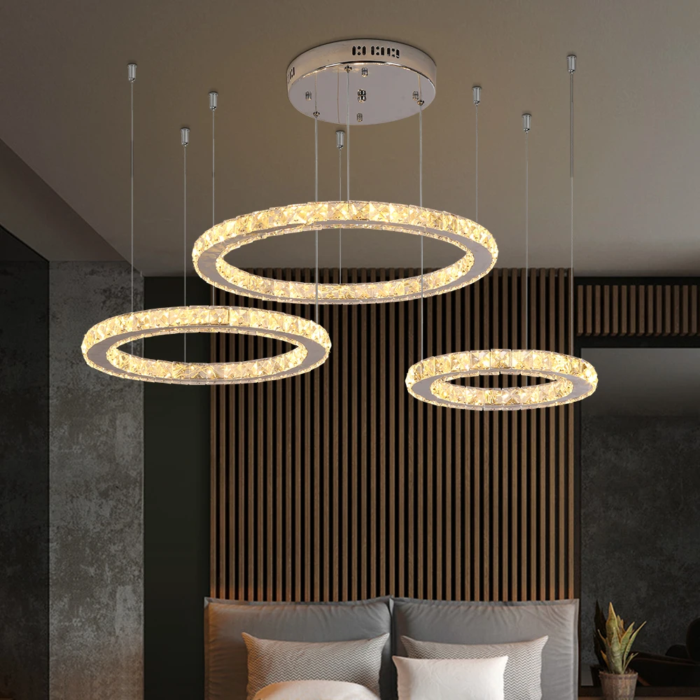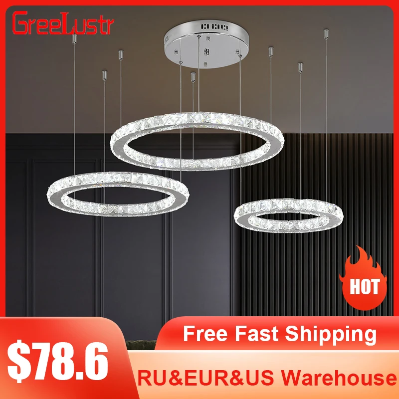 Современный хрустальный светодиодный подвесной светильник, хромированная люстра из нержавеющей стали, декоративная лампа для салона, спальни, светильник стницы