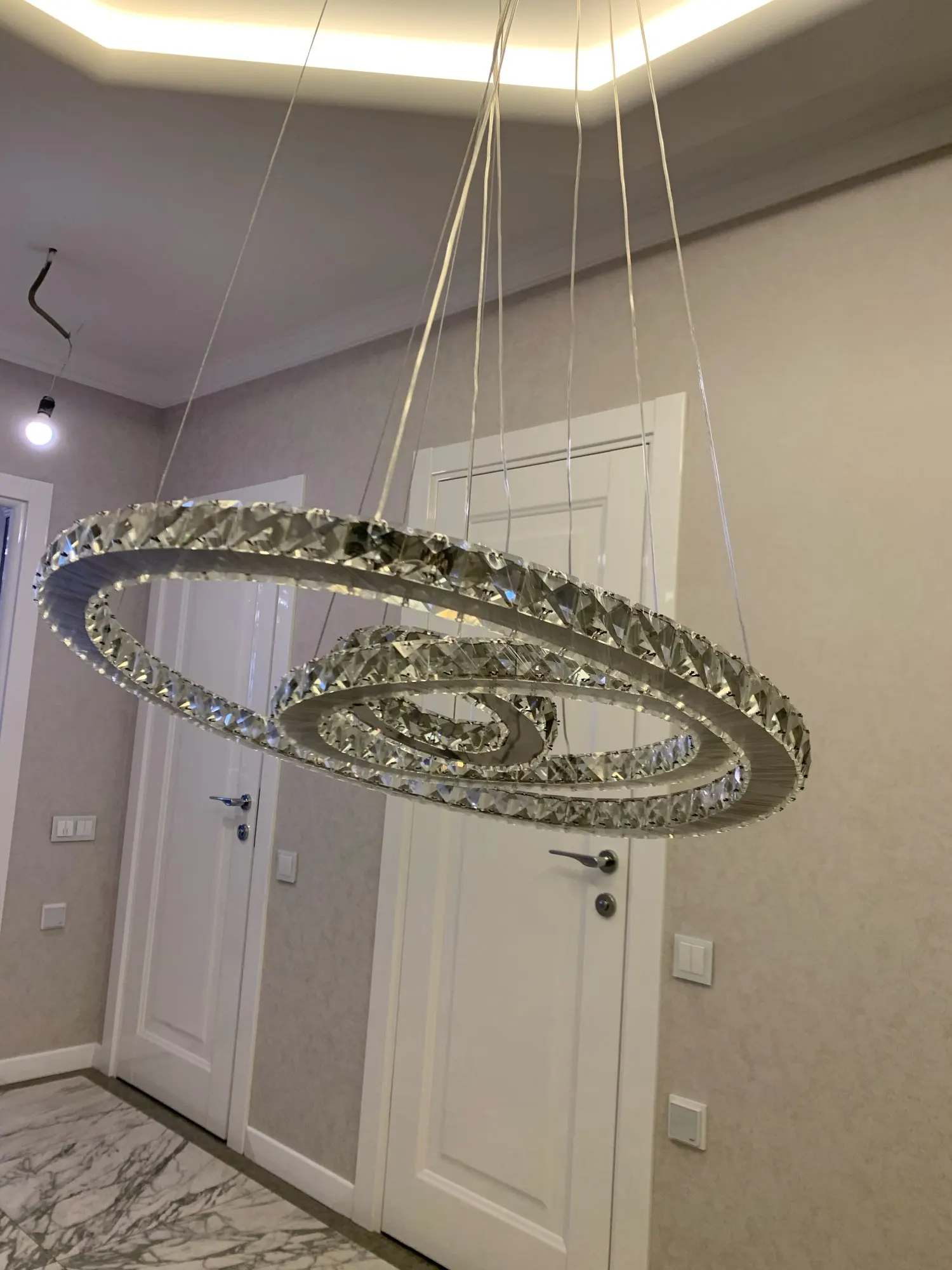 Люстры идеально вписались в интерьер . Продавец предусмотрел запасные хрусталики, поэтому несколько разбитых сразу заменили , длина троса позволяет вешать люстру на высокие потолки . Легкие в установке . Спасибо все понравилось!