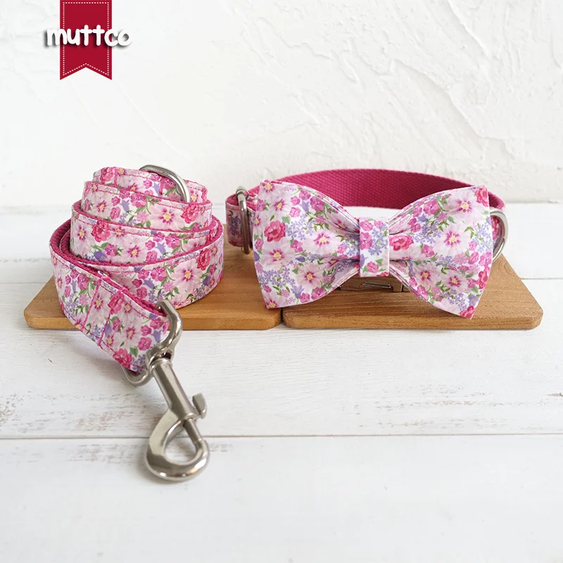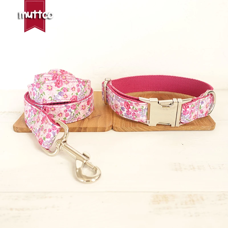 MUTTCO выгравированное имя любимчика розничная торговля воротник ручной работы розовый цветок Модные анти-потерянные ошейники и поводки для собак 5 размеров UDC048