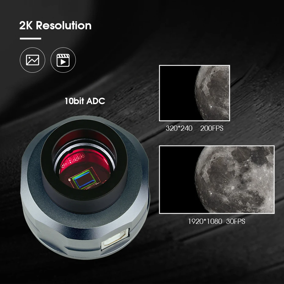 Доставка в Великобританию в течение 10 дней. Недорогая недорогая камера будет фотографировать и видео луну с диаметром 700x76 мм Newtonian/и диаметром 1200x200 мм Dobsinian telescope. Камера обеспечивает слишком большое увеличение (эквивалент окуляра 4-5 мм), и я боролся за фотографию Марса и основных звездных кластеров. Чувствительность слишком слаба для туманности. Для укладки требуется более широкое поле зрения. Узкий вид и большое увеличение искажают яркие звезды и не могут зарегистрировать более слабые звезды на фоне. Я буду использовать программное обеспечение Sharpcap для захвата, чтобы попробовать увеличить чувствительность к низкому освещению.