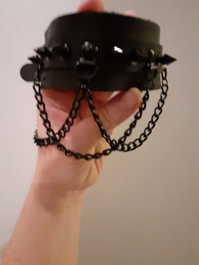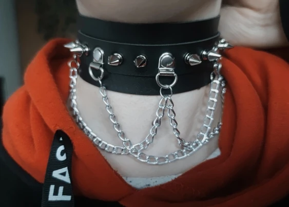 Из трех заказанных(из разных магазинов) чокеров, этот единственный пришел с небольшим заломом. Но он все еще красивый! Довольно удобный, шипы не слишком большие, не очень острые и красивые. Держится хорошо, даже не болтается на моей тонкой шее, что частенько бывает с чокерами Покупкой довольна